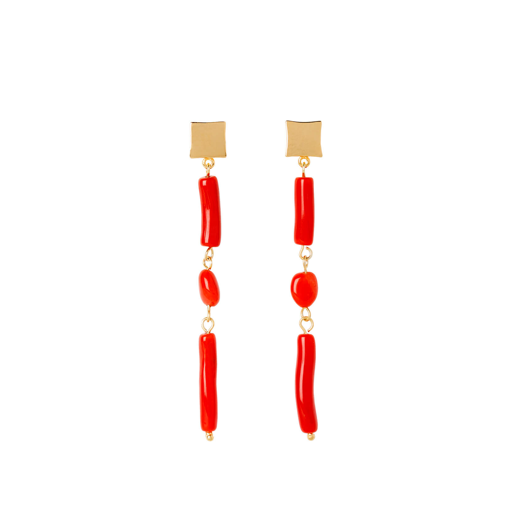 - Pendientes largos con piezas de coral mediterráneo de un tono rojo