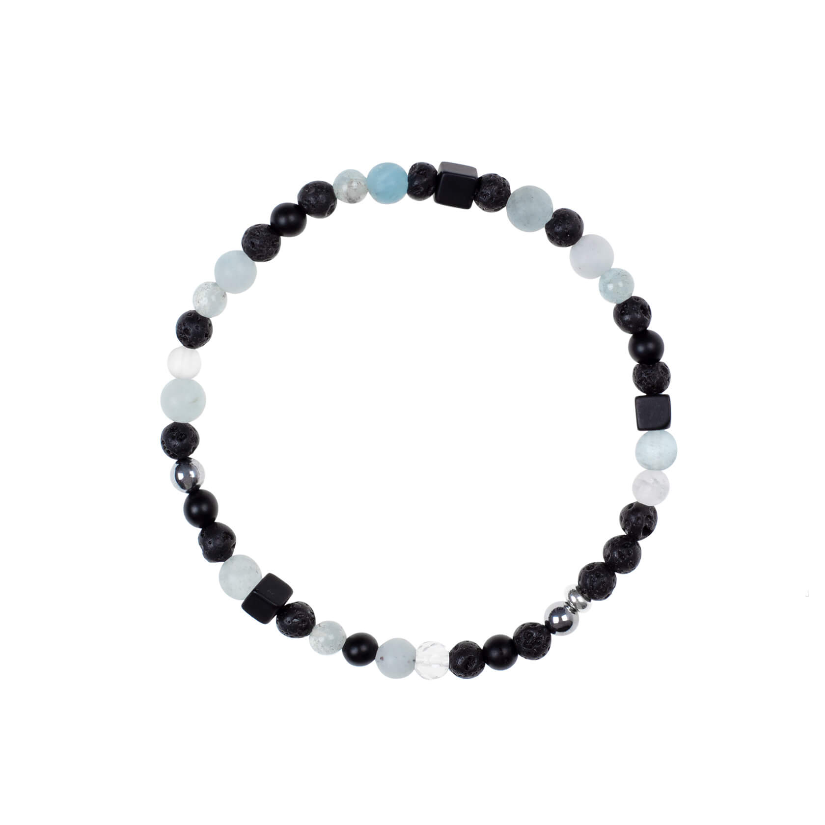 Pulsera unisex aguamarina, cuarzo cristal y lava pequeña
